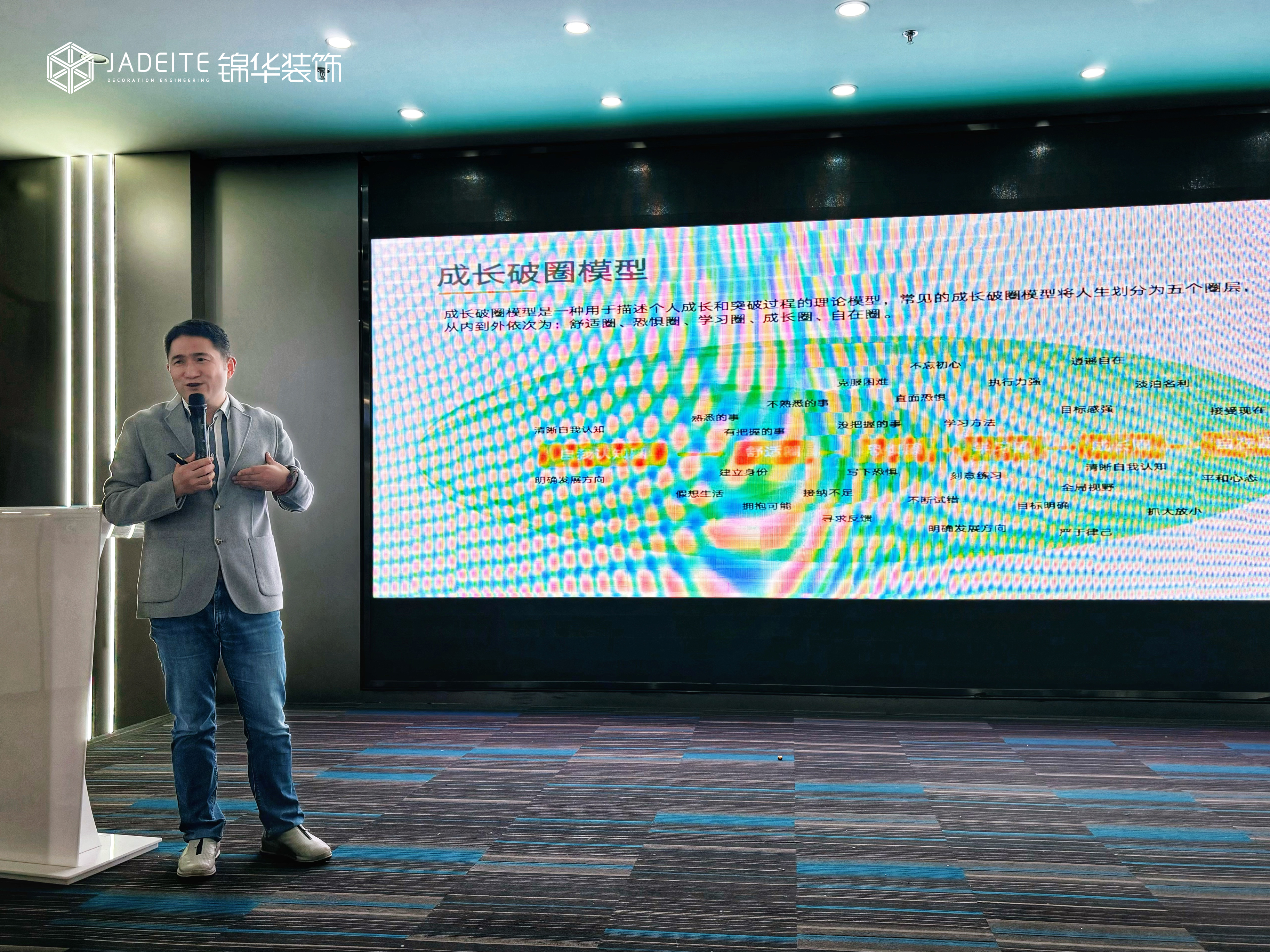 随后,锦华南通顾总首先从成长破圈模型出发,为我们解构了舒适圈、恐惧圈、学习圈、成长圈、自在圈五个不同的圈层。